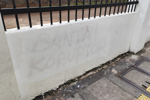 Kata-kata kasar juga tertulis oleh para demonstran di dinding-dinding tersebut.