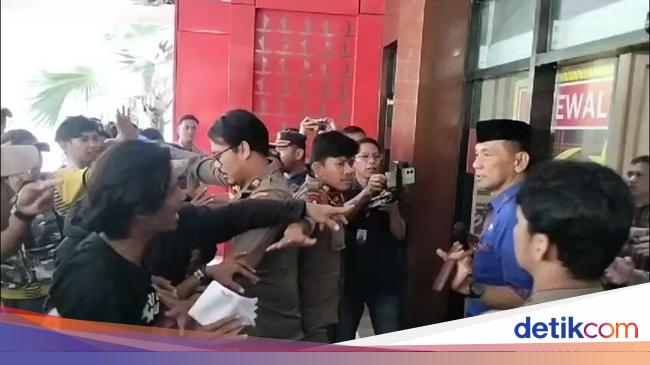 Ketegangan muncul saat massa berusaha memasuki halaman Polres dan ingin membakar ban bekas, tetapi dihalangi oleh aparat.