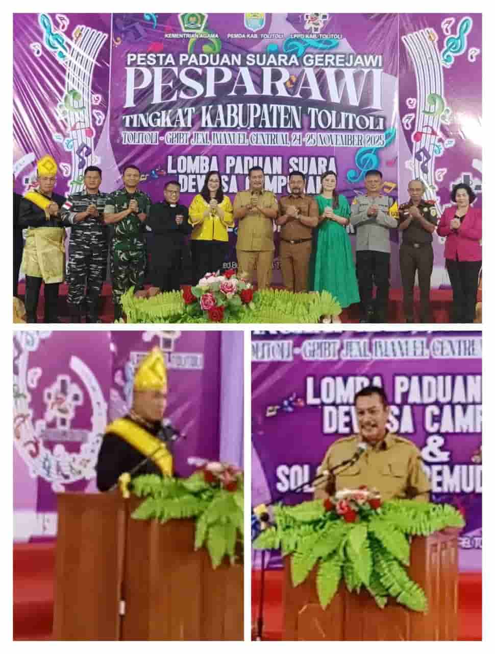 TOLI-TOLI, SULTENG | — Bupati Tolitoli H. Amran H. Yahya secara resmi membuka Pesta Paduan Suara Gerejawi (Pesparawi) Kabupaten Tolitoli Tahun 2025 yang digelar di Gedung Gereja GPIBT Jemaat Imanuel Centrum, Senin (24/11) pukul 16.00 WITA. Pembukaan berlangsung khidmat dan penuh sukacita, dihadiri unsur Forkopimda, jajaran pemerintah daerah, LPPD, Kementerian Agama, serta perwakilan gereja-gereja se-Kabupaten Tolitoli.