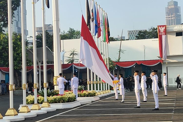 Pengibaran bendera berjalan lancar pada pukul 07.04 WIB.
